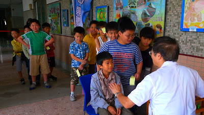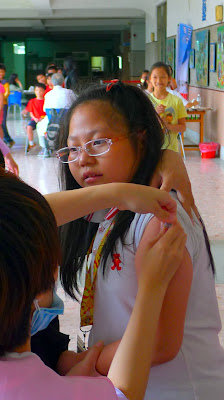 醫生和護士阿姨一天內要幫全校三至六年級的小朋友注射,一定很忙碌,但幸好有規畫流暢的動線,溫柔堅定的醫生和阿姨,還有守秩序的好孩子,所以注射的速度快到老師幾乎來不及拍照呢。