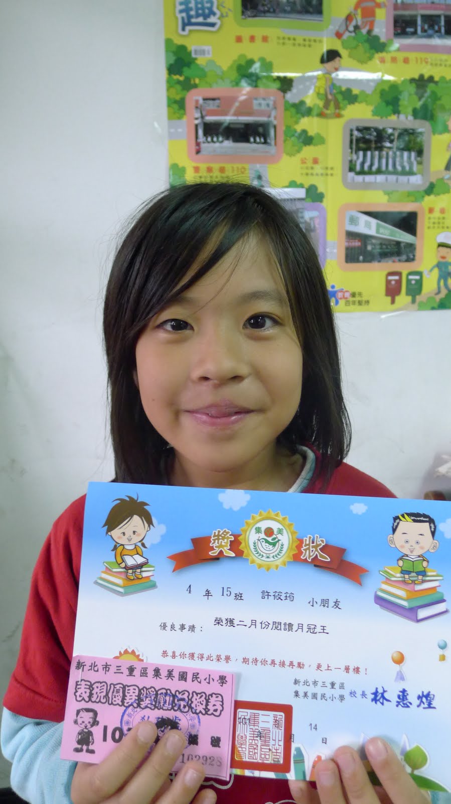101年2月的閱讀月冠王,筱筠和靖宜,表現得很好!