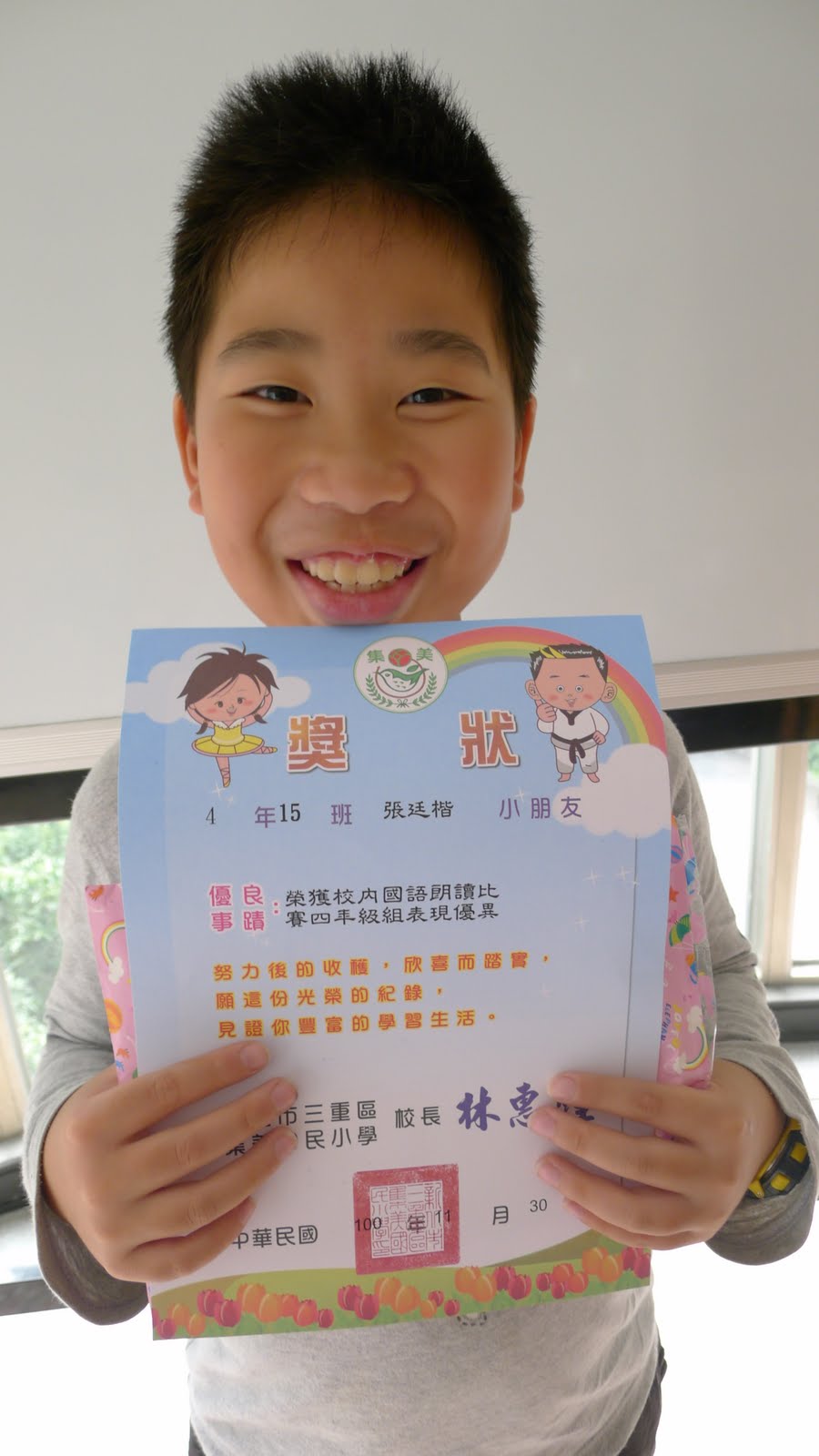四年級校內國語文競賽,班上的小朋友表現優異,恭喜!